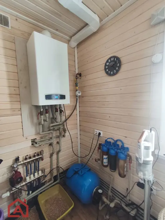 - Отопление на 1-м этаже реализовано в виде теплых полов, подогреваемых газовым котлом. На 2-м этаже радиаторы.