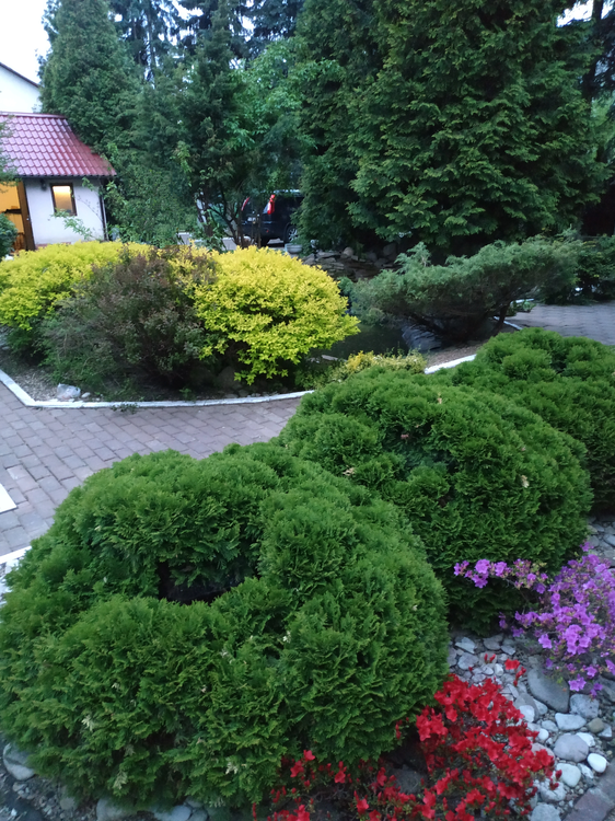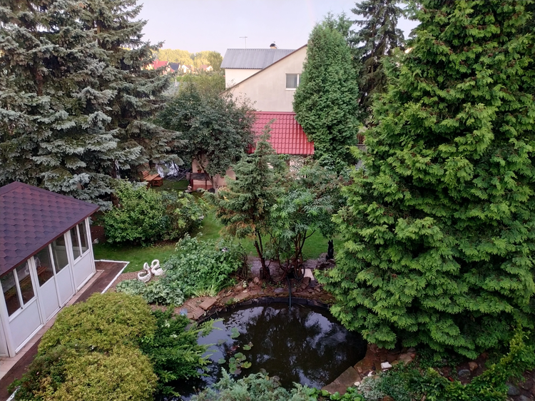 На большом участке (10,4 сотки) выполнен профессионалами ландшафтный дизайн. Есть зона барбекю, застекленная беседка, качели, гараж, пруд с водопадом и золотыми рыбками. Очень красивый ухоженный участок-огромное количество хвойников из питомника( 20 взрослых голубых елей, около 70 туй), кустарники, цветы. Участок огорожен кованым забором и живой изгородью из туй по всему по периметру, ворота с электроприводом. Установлено видеонаблюдение по всему периметру участка и дома. Декоративная надежная ковка на всех окнах.