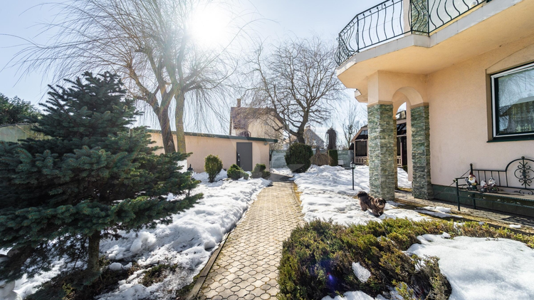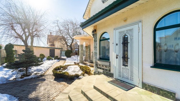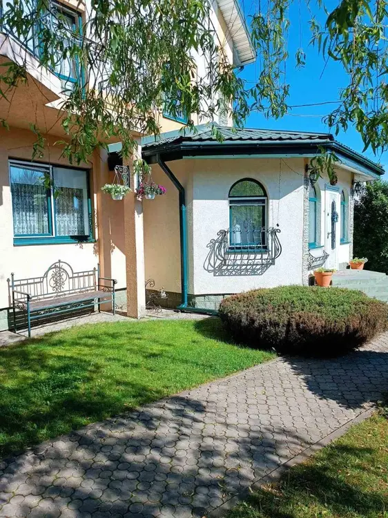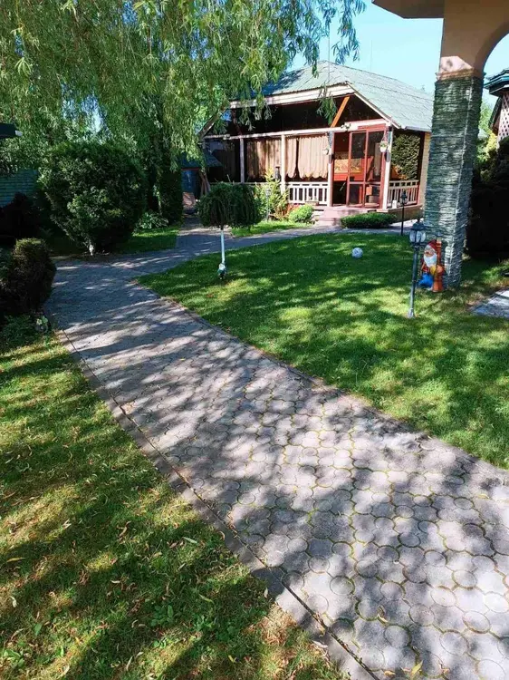 Коттедж расположен на ухоженном участке, огражденном стильным забором и оформленном настоящим шедевром ландшафтного дизайна.