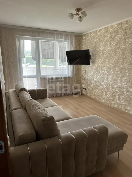 ПВХ-окна, ровные стены, импортные обои, потолки окрашены.