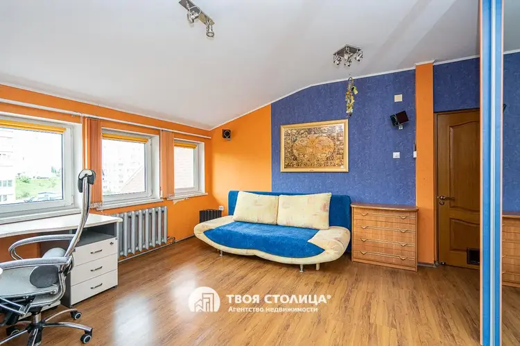 Эксклюзивное предложение на рынке недвижимости - 3-комнатная квартира в доме клубного типа в самом сердце агрогородка Сеница.Принимая чашку утреннего кофе у себя во дворе, вы будете слышать пение птиц, а не ссоры соседей и шум машин. Оказывается, можно впитывать тишину и наслаждаться уединенностью, находясь прямо в эпицентре городских событий. Это на самом деле возможно. Эта возможность уникальна.Квартира занимает весь 4-ый мансардный этаж. Здесь максимально продуманная и практичная планировка: огромный холл с настоящим камином, три изолированные комнаты, просторная кухня, раздельный санузел с большой ванной комнатой и 2 застекленных и утепленных балкона. Окна выходя на все стороны света и ни один вид не оставит Вас равнодушным.В квартире выполнен отличный ремонт с использованием качественных материалов: напольное покрытие - ламинат высокого класса и плитка, встроенная кухня с качественной фурнитурой и импортной техникой. В санузлах установлена необходимая сантехническая посуда. В квартире много окон, за счет чего комнаты выглядят еще более просторными и светлыми. Камин с живым огнём добавляет уюта, а 2 кондиционера установят и поддержат оптимальную температуру. Входная металлическая дверь.Территория вокруг дома обнесена забором и включает в себя: уютную беседку с мангалом, ухоженный газон, фруктовый сад, клумбы и грядки для зелени.Хорошее транспортное сообщение: автобусы и маршрутные такси. Недавно открылась новая станция метро Слуцкий гостинец.В Сенице расположены: средняя школа им. Я. Купалы, поликлиника, аптека, детские сады, детская школа искусств, дом культуры, спортивные секции для детей, музыкальная школа, для самых маленьких - подготовительные кружки к школе. Фитнес-зал, библиотека, дом быта, парикмахерская, почта, магазины (ГИППО, Мила), торговый центр, банки, пункты выдачи Ozon и Wildberries - здесь есть всё, что необходимо для комфортной жизни.Чистый воздух, отличная питьевая вода. В пешей доступности река с рыбой и раками. Обилие зелени и уютных дорожек. Сеница - идеальный баланс между природой и городской жизнью.Трехкомнатная квартира по адресу ул. Янки Купалы, д. 3 (агрогородок Сеница)Материал стен: панельныйГод постройки: 1997Этаж: 4/4, 2 балкона застекленныхОбщая площадь: 113. Жилая площадь: 39.6. Площадь кухни: 16Смотреть подробнее Торг. Предложите свою цену. Последние поступления квартир. ТОП-20 ДЕШЕВЫХ КВАРТИРБАЗА ПОКУПАТЕЛЕЙ – узнайте, кто готов купить вашу квартиру прямо сейчас!КАЛЬКУЛЯТОР СТОИМОСТИ ЖИЛЬЯ – онлайн- расчет стоимости вашей квартиры!ПЕРЕЕЗЖАЕМ В НОВОСТРОЙКУ- программа обмена старого жилья на новое. 2 сделки в 1 день!ПАРТНЕР-КРЕДИТ сопровождение кредитования для покупки и обмена «под ключ»ВАШ ВАРИАНТ- проверка квартир перед покупкой и оформление сделки, если вы нашли объект самостоятельно. ООО "Твоя столица", УНП 101136973, лицензия №02240/15 от 17.02.05г.