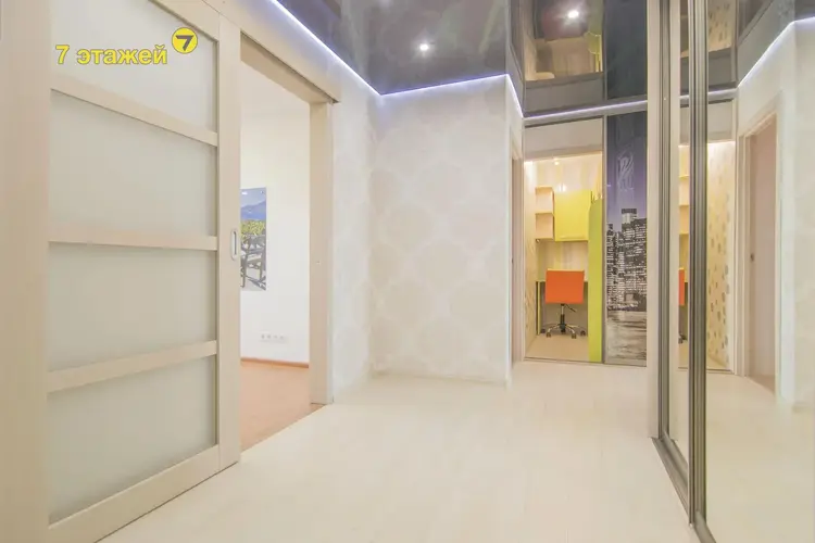 Расположена в доме с улучшенной планировкой: большие окна, вместительная гардеробная, высокие потолки, просторная лоджия, раздельные санузлы. Две квартиры в тамбуре с дополнительными шкафом и местами для хранения. Удобная разводка электрики из меди, с усиленной изоляцией, отдельные УЗО на энергопотребляющие приборы. Межкомнатные двери из массива. В отделке использованы качественные импортные материалы (в спальнях экологичное пробковое покрытие пола от «Wicanders») и хорошая сантехника -все для Вашего комфорта и уюта. В квартире регулируемое отопление. Установлены фильтры очистки воды. Охраняемая закрытая территория, чистота в благоустроенном дворе и в подьезде, удобные парковки, детские площадки. Магазины, разнообразные услуги, сады, школы-поликлиника, прогулочная зона возле озера-все поблизости. Автобусная остановка в 5 минутах от дома. До метро Слуцкий Гостинец- 4 остановки -11 минут езды на автобусе (ходят каждые 15 минут) + маршрутка, а пешком можно дойти за полчаса. Выезд на МКАД, до которого всего 5 минут езды, позволяет быстро доехать в любую точку Минска.
