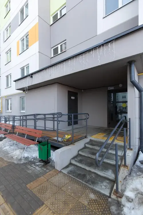 Во дворе дома есть новая оборудованная детская площадка, где ваши дети будут в безопасности и веселье. Также есть большая свободная парковка, где вы всегда найдете место для своего автомобиля. В 380 метрах от дома протекает река «Сеница», где можно отдохнуть или просто погулять по берегу.