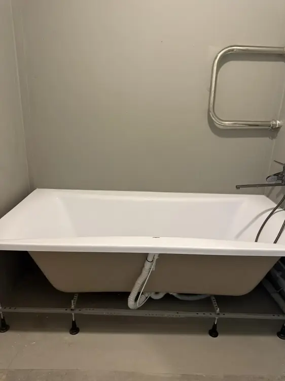 В квартире уложен ламинат, разведена электрика и установлена ванна.