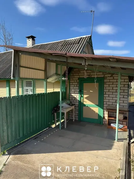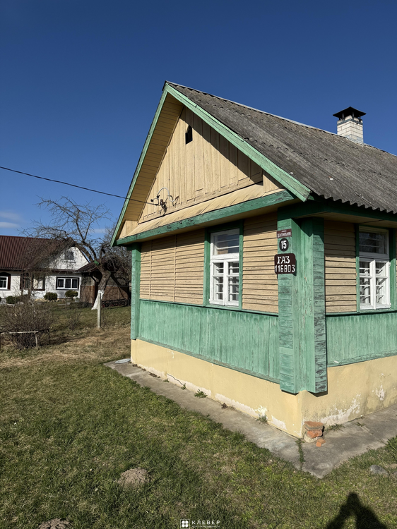 Деревянный, площадь 47,1 кв. м. Крыша — шифер. Дом полностью готов к зиме: центральный газ и центральный водопровод.