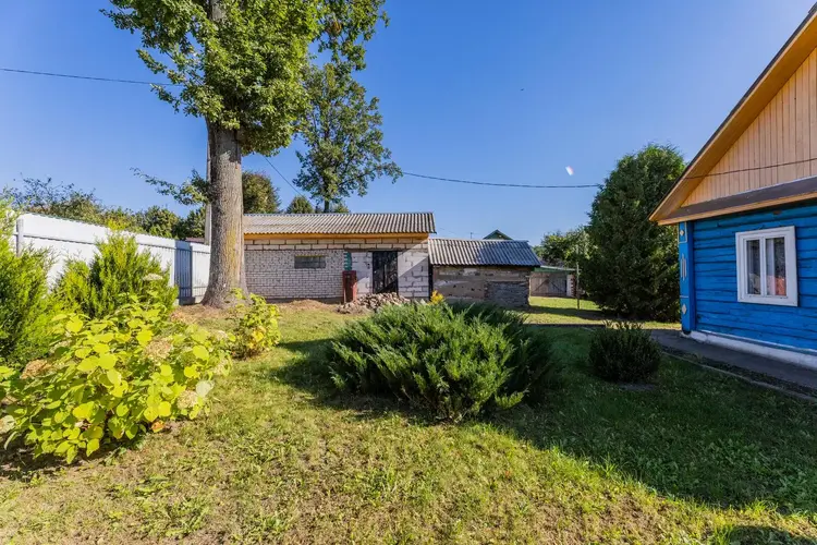 Участок окружён разнообразными деревьями, что создаёт приятную атмосферу. Здесь достаточно пространства для организации зоны барбекю, игровой площадки для детей или реализации любых других дизайнерских идей.
