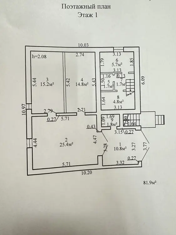 1 этаж - подвал, гараж, мастерская, котельная, туалет, ванная. 2 этаж-3 комнаты, кухня, прихожая.