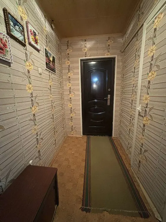 На полу — ламинат , стены — обои , потолки окрашены в кухне сайдинг. В прихожей установлен шкаф купе, в кухне — кухонный гарнитур в достойном состоянии. В гостиной заменено окно на ПВХ.