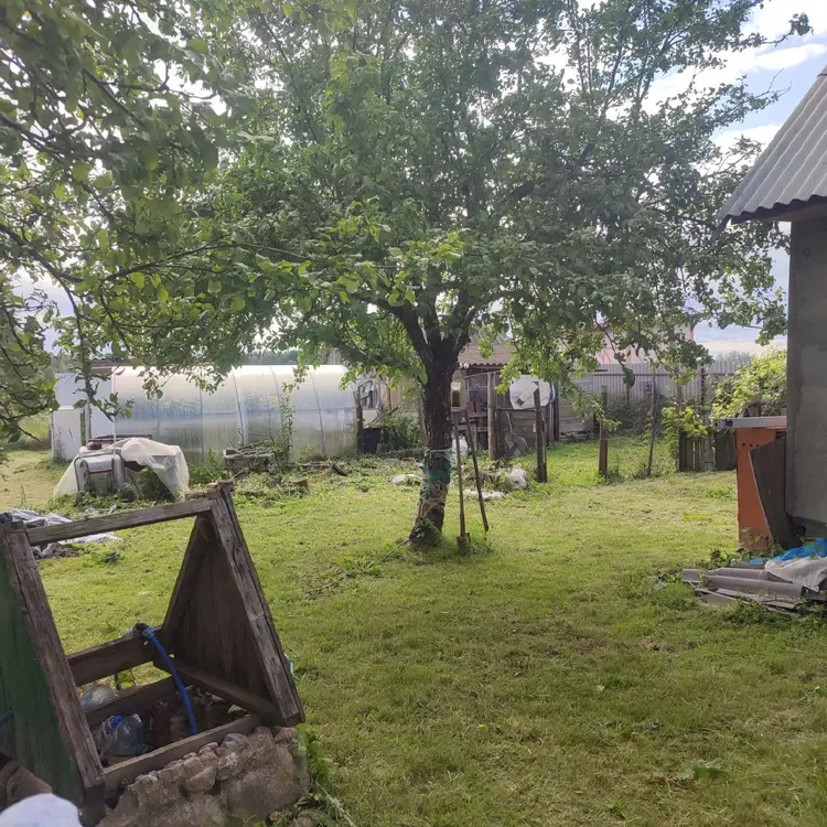 На ровном участке правильной формы есть сад, баня, теплица и блочная хозпостройка, еще много места для создания уюта и мест для досуга в кругу Вашей семьи.
