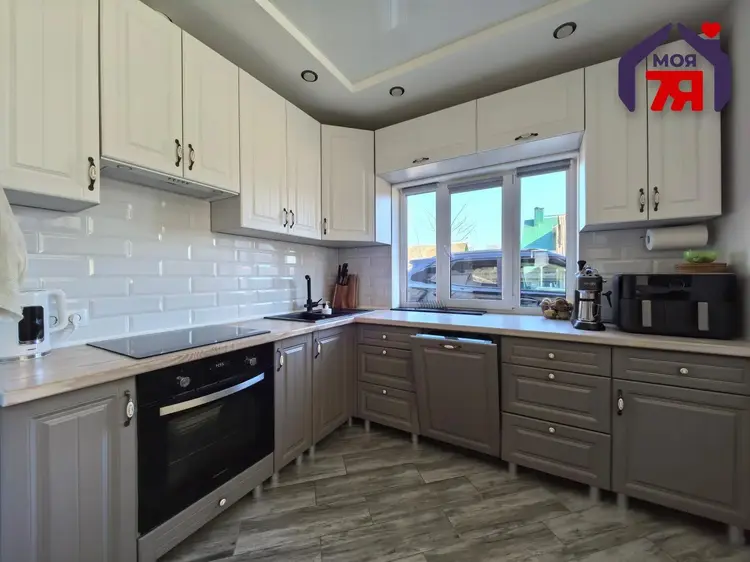 Двухэтажный блочный дом 2019 года постройки, общей площадью 108,4 м², с панорамными окнами, теплым полом, всеми коммуникациями и полностью меблированным интерьером на участке 9,8 соток в спокойном районе Слуцка.