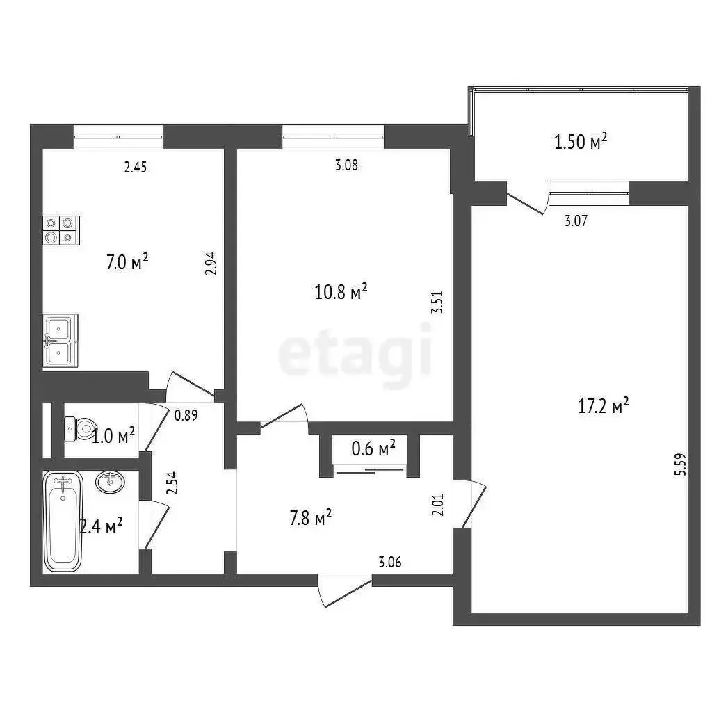 Продаётся 2-х комнатная квартира с удобной для жизни планировкой (площадь по СНБ=48,3 м2).