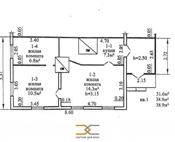 38.9 м2