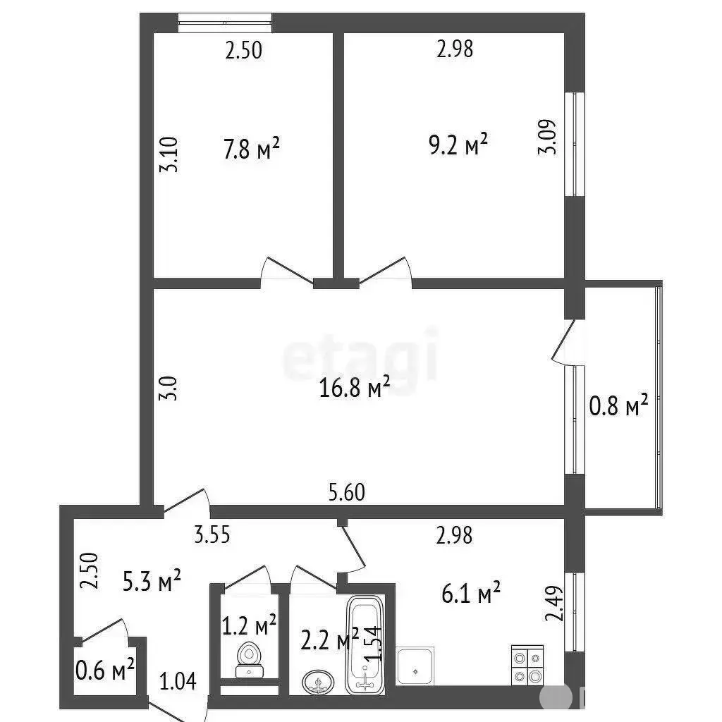 3-х комнатная квартира в (площадь по СНБ=50 м2) в отличном месте.