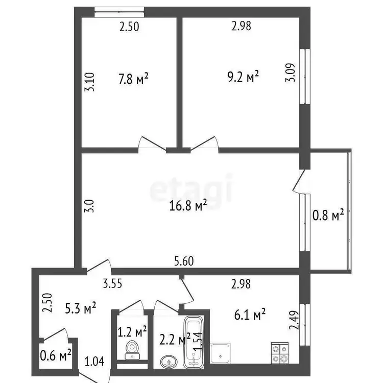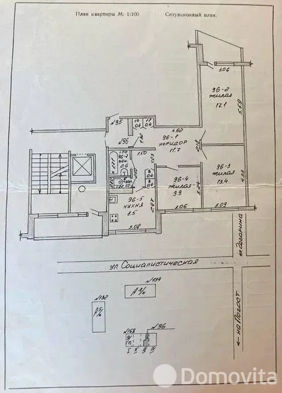 • Площадь комнат: 17,1 м² / 13,4 м² / 9,9 м²