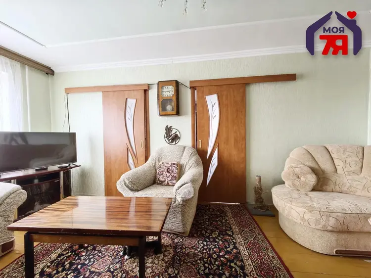 4-комнатная квартира 56,7 м² на 4 этаже кирпичного дома 1967 г. с застеклённым балконом и окнами на две стороны. Аккуратный ремонт, деревянные полы, частично остаётся мебель. Тихий двор, школы, рынок, медколледж и магазины рядом, удобный транспорт и выезд к ж/д станции и автовокзалу.