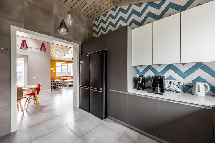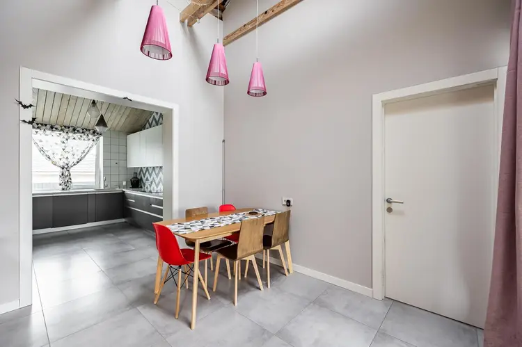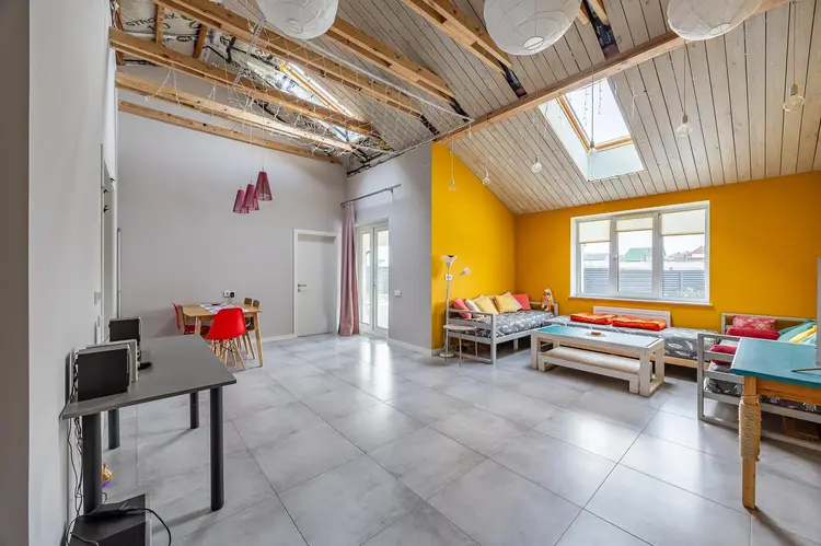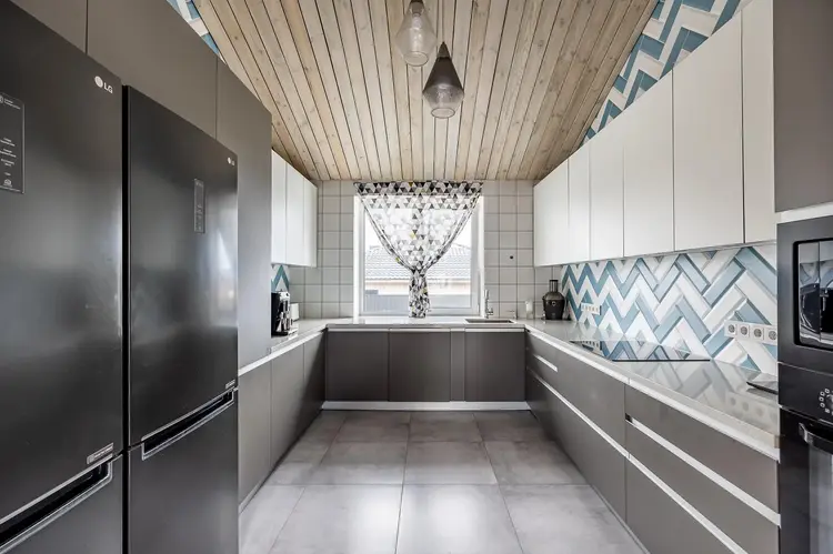 В доме сделан высококачественный ремонт с дизайнерским решением. Напольное покрытие – плитка и ламинат (33 класс). Потолки – беленый планкен, зашивка по стропилам, в коньке высота до 4 метров. Вместительная кухня с каменной столешницей и бытовой техникой. Встроенные шкафы в гостиной для хранения вещей и верхней одежды