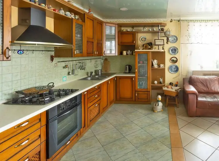площадью 25.6 м2 оснащена встроенным духовым шкафом и варочной панелью,