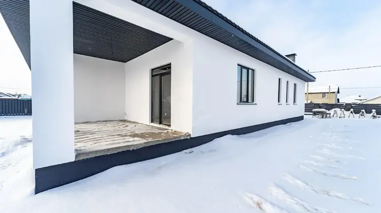 Фасад дома полностью готов и покрашен, что придает ему привлекательный внешний вид. Внутренние помещения оштукатурены и ждут вашего вдохновения для реализации дизайнерских решений. Дом построен из силикатных блоков, что гарантирует отличную тепло- и звукоизоляцию: наружные стены имеют толщину 400 мм, перегородки — 200 мм. Высота потолков в 3,2 м создает ощущение простора и свободы. Большие окна ПВХ высотой 1,75 м заполняют помещения светом и создают уютную атмосферу. Крыша выполнена из металлочерепицы премиум класса Grand Line.