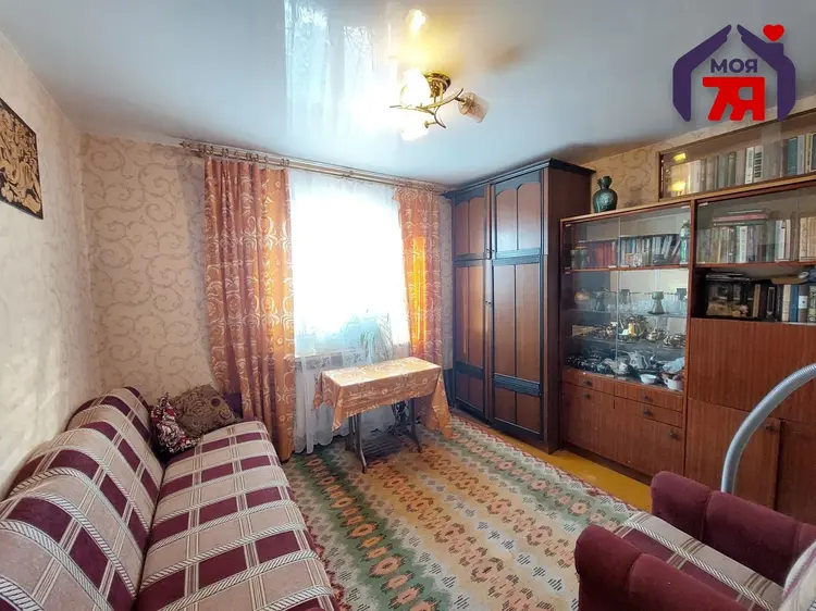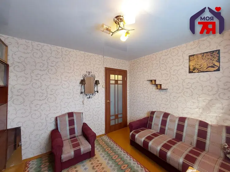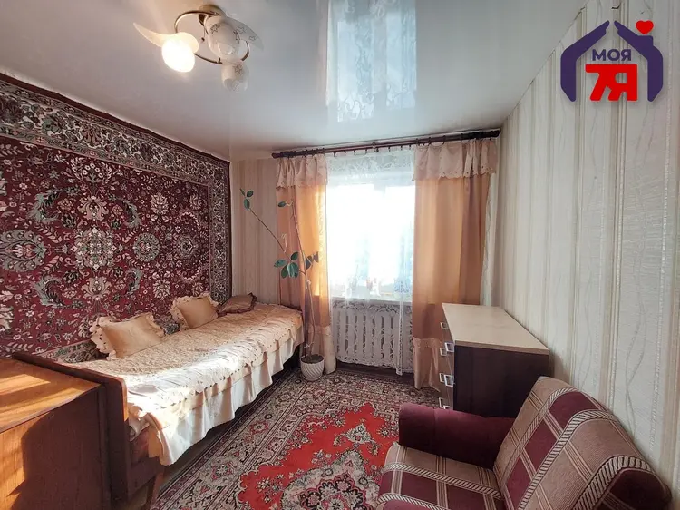 -Интерьер выдержан в спокойном, жилом стиле. В основной жилой комнате выполнен нейтральный ремонт: ровные стены, аккуратный натяжной потолок с центральной люстрой, классический текстиль на окнах. За счёт двух окон пространство хорошо освещено в течение дня, а комната воспринимается светлой и по-настоящему уютной.