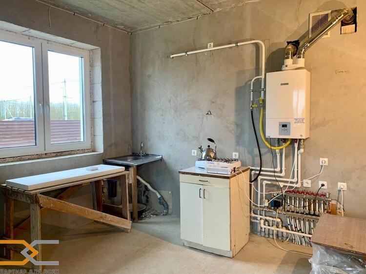 Дом отапливается - установлен газовый котел BOSCH 6000, батареи разведены по комнатам. Имеется газовая плита. Электричество разведено по комнатам .