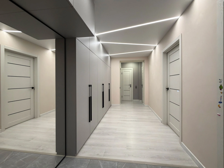 • Натяжные потолки: Со световыми линиями создают особую атмосферу.