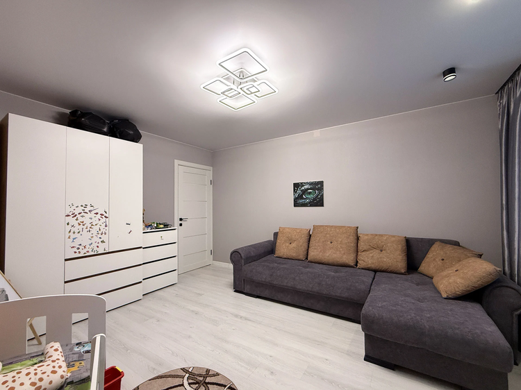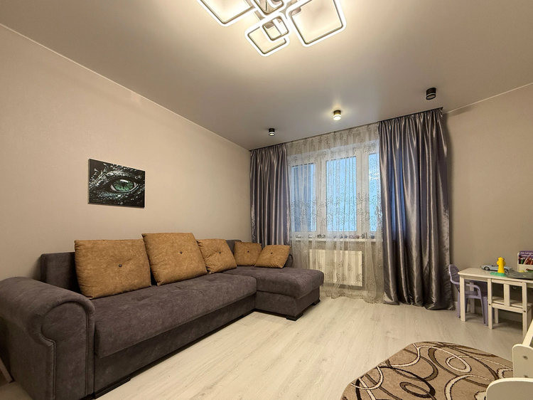 • Просторная планировка: Комнаты светлые и уютные, большая кухня с современным кухонным гарнитуром и техникой.