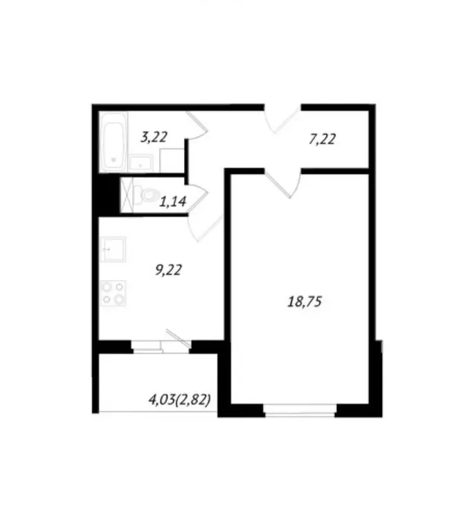 Площадь квартиры общая по СНБ 60,3 м. кв, жилая 34,3 м. кв., кухня 10,6 м. кв.
