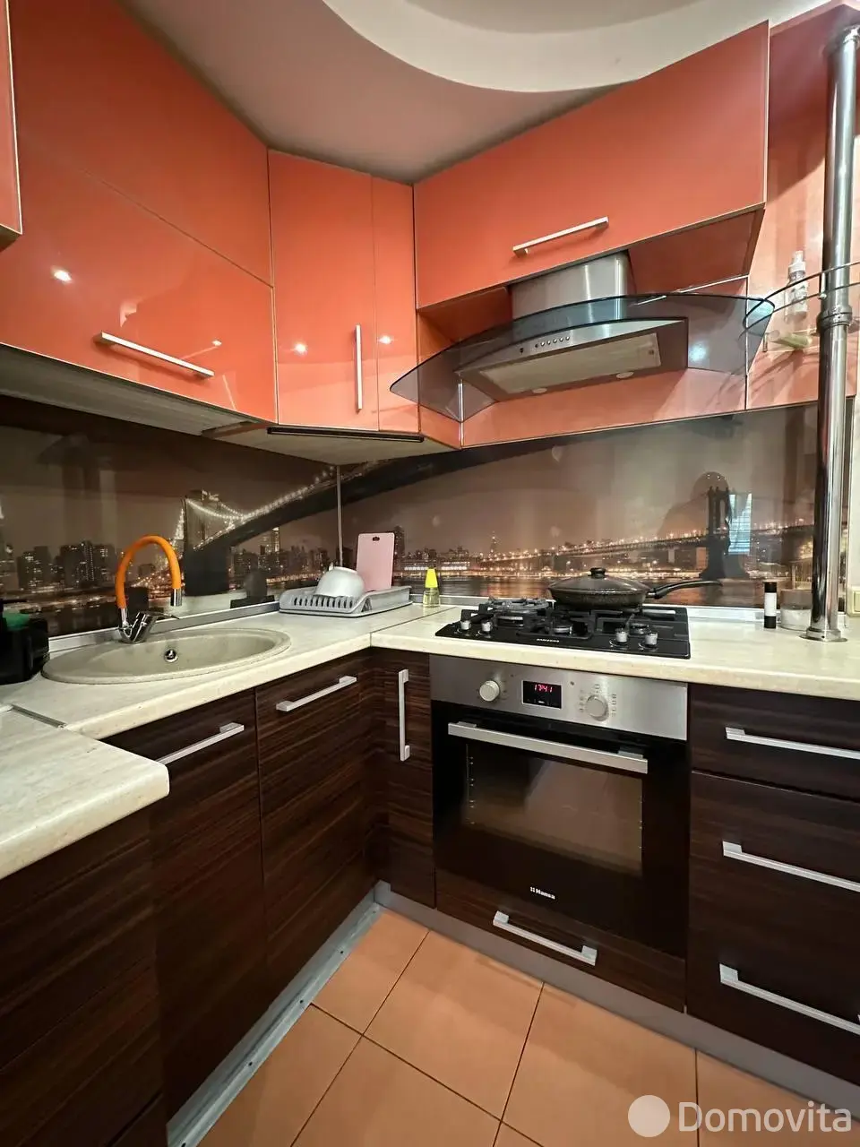 Встроенная кухня со всей необходимой техникой.
