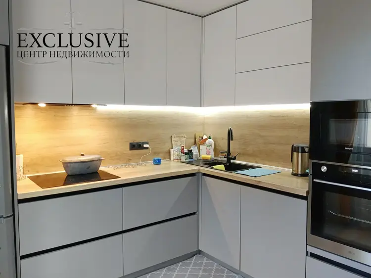 Квартира готова к проживанию. Новому собственнику остается вся встроенная мебель - встроенная кухня отличного качества с техникой (духовой шкаф, варочная панель, вытяжка), два шкафа-купе в прихожей.