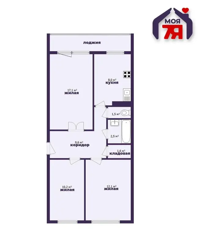 -Особое преимущество - просторная лоджия, которую можно использовать как дополнительную зону отдыха, кабинет или место для хранения.