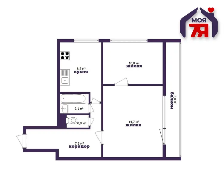 -Общая площадь 44 кв.м., жилая - 24,7 кв.м., кухня впечатляет - целых 8,5 кв.м.