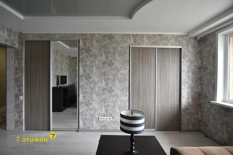 В гостиной оборудован большой и вместительный встроенный шкаф/гардеробная!