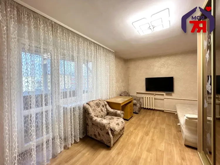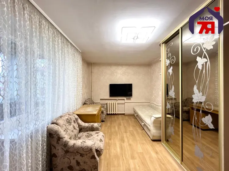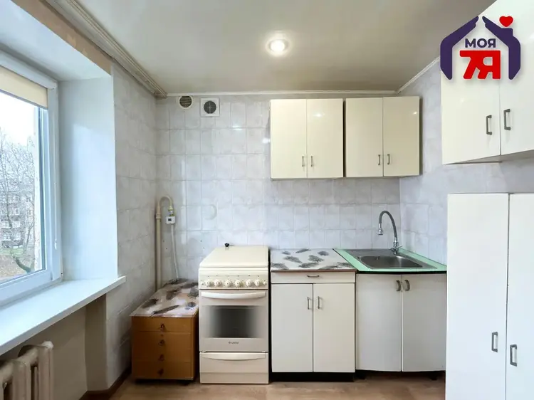 - Общая площадь квартиры – 29.4 м2, жилая площадь составляет 17 м2. Напольное покрытие - линолеум.