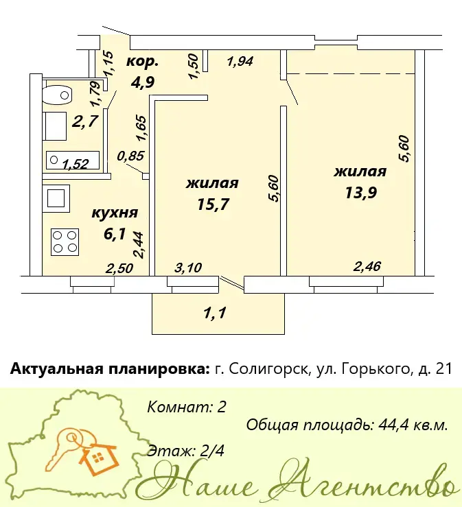 44.4 м2