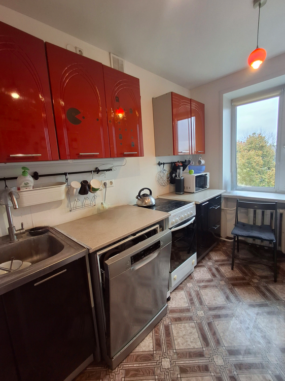 Квартира с косметическим ремонтом, позволяющим заселиться после покупки, светлая, везде стеклопакеты ПВХ, включая лоджию. Окна выходят на три стороны. На полу ДСП и линолеум, потолки натяжные, межкомнатные двери – массив, входная – металлическая, санузел облицован керамической плиткой.