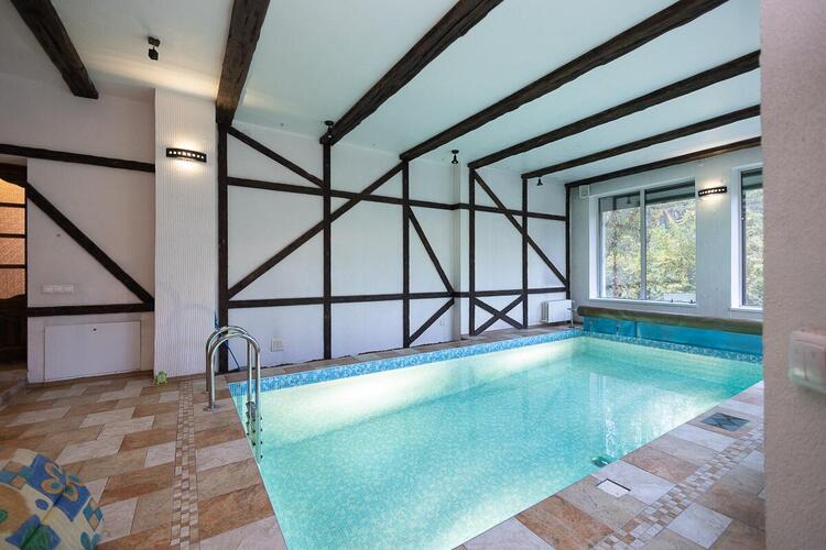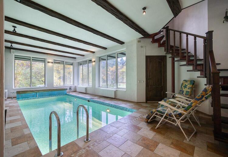 кухня, просторная гостиная с камином из морёного дуба, банный комплекс с русской баней на дровах, бассейн с гидропушкой и системой автоматического химанализа, подогревом воды, душевой зоной