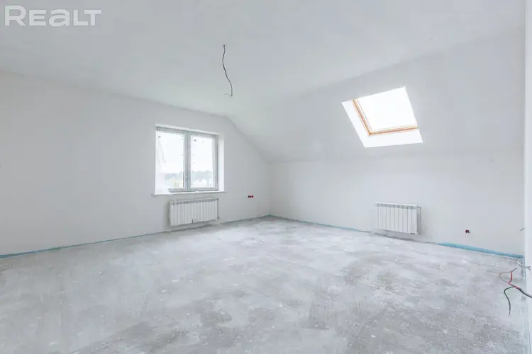 2-й этаж мансардный 179,5м2, высота потолка 2,79м. Холл 15,8м2, спальня 1- 31,5м2, спальня 2 - 32,6м2, спальня 3 - 21,2м2, кухня-гостиная 59м2, санузел 1 - 9,9м2, санузел 2 - 9,5м2.
