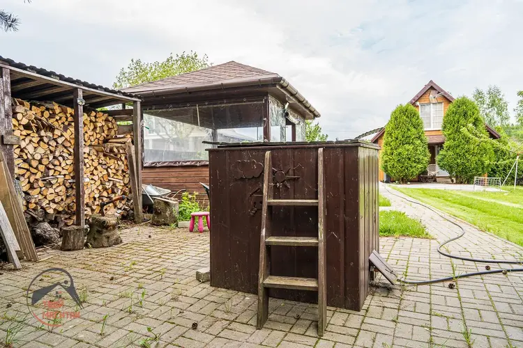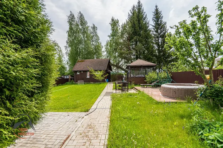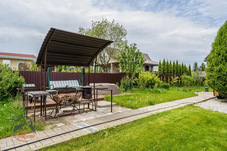 Ландшафтный дизайн с небольшим садом, ухоженный газон, по перимитру высокие туи. Дорожки из тротуарной плитки. Огораживает участок высокий забор из металлопрофиля, ворота автоматические, откатные, на пульте управления. Своя скважина 45 м, канализация два колодца по три кольца, одно кольцо 1,5м. Видеонаблюдение по всему участку, зарядка 5 квт для электромобилей, в доме и бане разделные системы очистки и фильтрации воды.