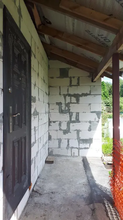 Свет в доме, вода сезонная (у соседа скважина – легко можно сообразить постоянную подачу воды в дом). Установлены стеклопакеты и входная металлическая дверь.