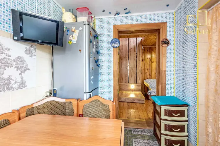 Полы: на кухне и сан.узле- плитка, в жилых комнатах ламинат.