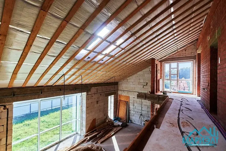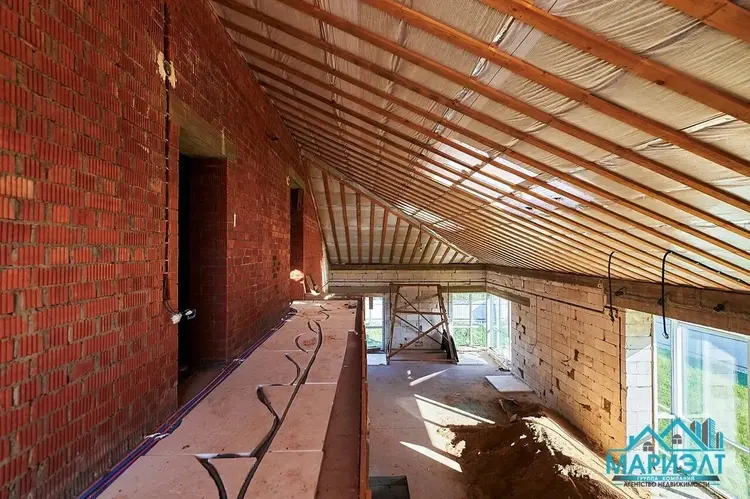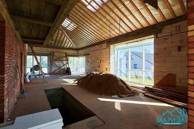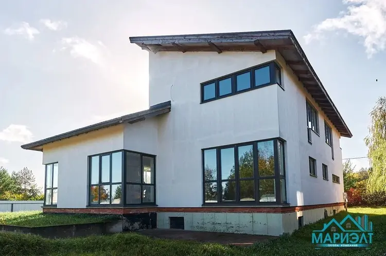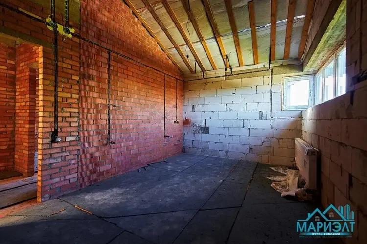 Подготовлены коммуникации для отопления и водоснабжения бани. Водоснабжение центральное, канализация местная. Электричество разведено по всему дому и подключено. В просторной гостиной высокие, панорамные окна из немецкого металлопрофиля. Крыша – мягкая черепица.