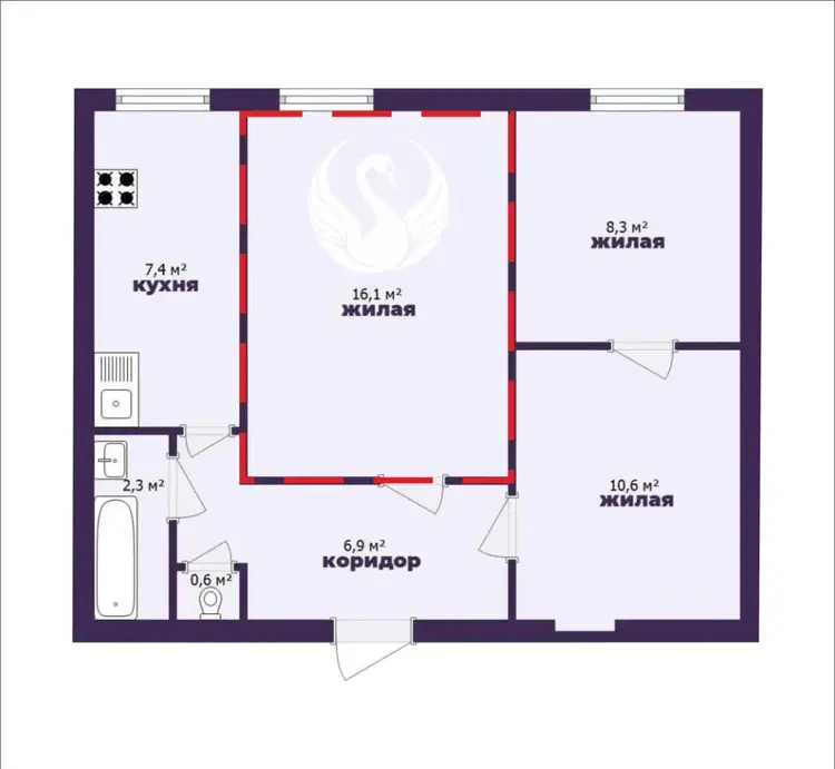 3 комнаты