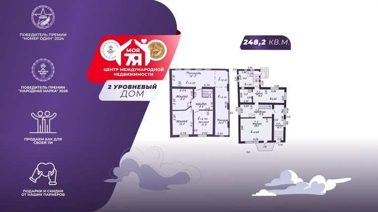 -Общая площадь дома составляет 248,2 м² (жилая площадь 62,7 м²), что позволяет комфортно разместить семью и создать дополнительные помещения для хозяйственных нужд.