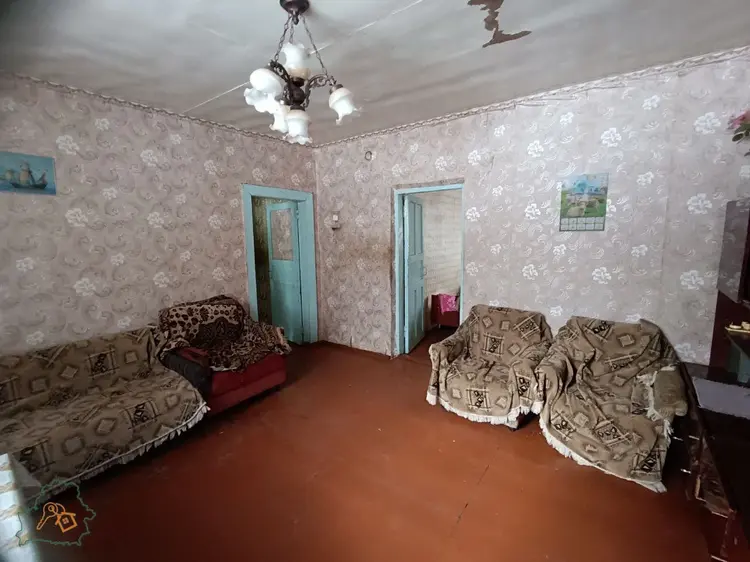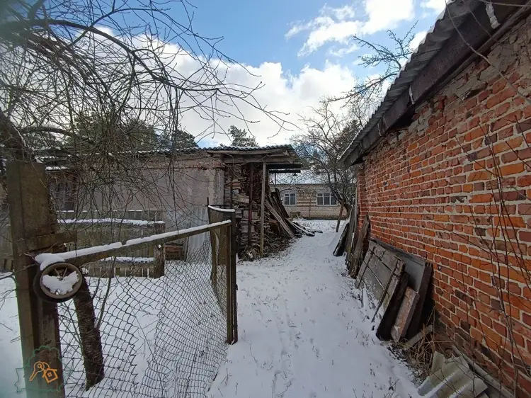 Дом кирпичный, крыша шифер. На участке имеются 2 кирпичных сарая, баня. Общая площадь части дома 57,5 кв.м, жилая 35,0. Отличная планировка: три жилые комнаты, просторная кухня 8,5 кв.м. Окна все деревянные.