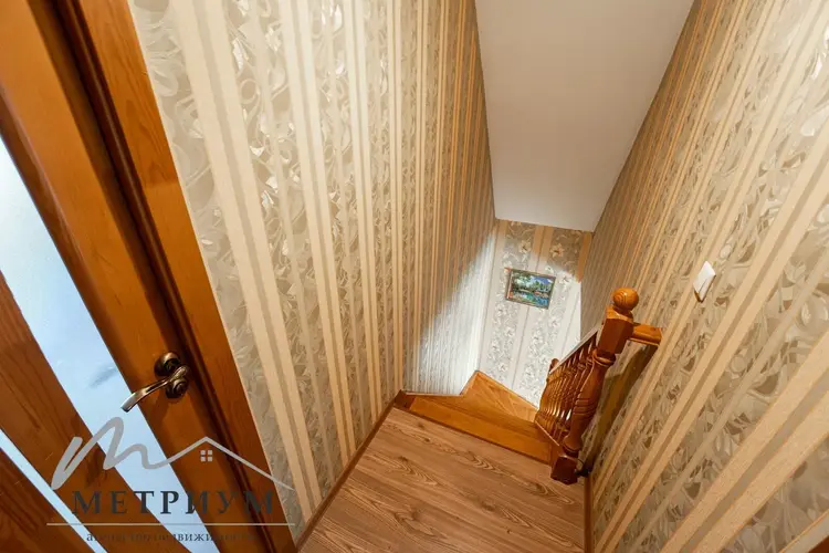 На 2-ой этаж ведёт деревянная лестница с ограждением. Также здесь расположены 2 спальные комнаты 16,5 кв.м, 17,2 кв.м и санузел 2,3 кв.м.