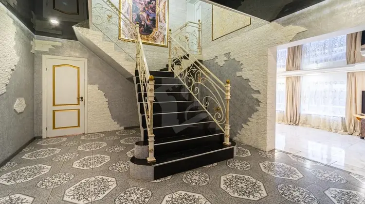 Выполнен хороший ремонт с приятными акцентами в интерьере и кованной лестницей, которая ведет на второй этаж. Ее изысканное оформление добавляет неповторимости этому дому и создает элегантную атмосферу. Установлены стеклопакеты (ПВХ), напольные покрытия: кафель.