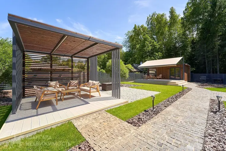 Общая площадь по СНБ – 264.8 м2. Дом 2018 года постройки (ремонт 2023 года). Внешние и несущие стены из газосиликатных блоков, оштукатурены снаружи, частично отделаны декингом и клинкером. Перекрытия – железобетонные. Фундамент – монолитная железобетонная плита. Крыша – металло-черепица. В отделке и наполнении дома использовались высококачественные современные материалы, техника и оборудование премиум сегмента известных мировых брендов.