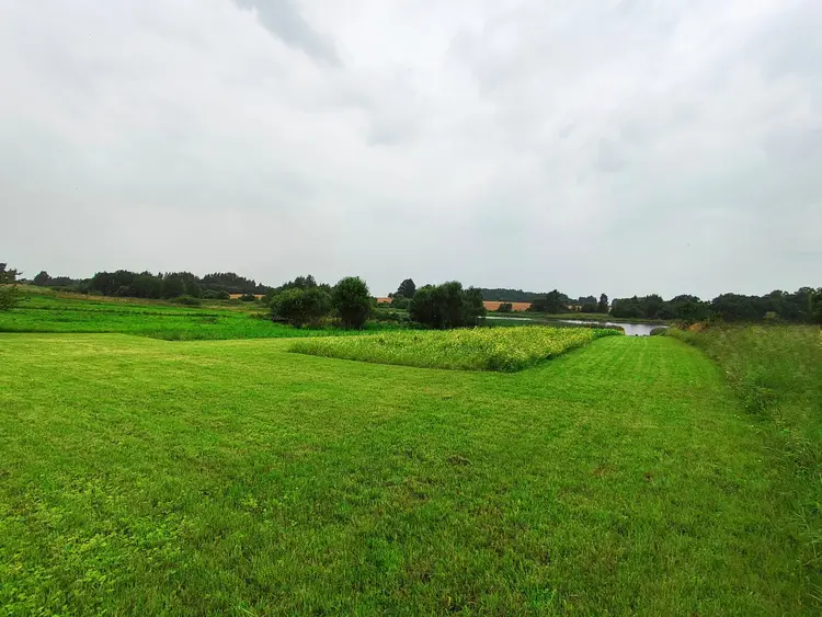 0.25 га ровной земли, засеянных газоном, декоративные насаждения, плодовые деревья и кустарники.