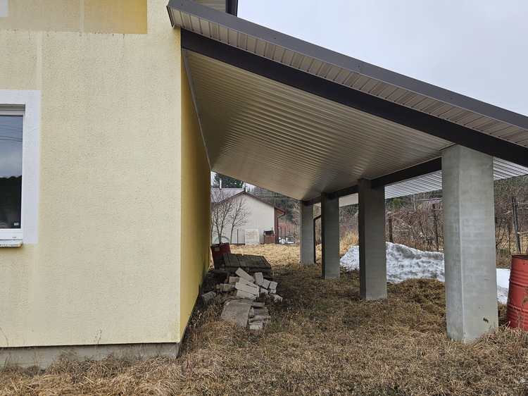 · Добротность и комфорт: входная металлическая дверь, откатные ворота, просторное крыльцо-веранда с хорошим видом и надежная лестница на второй этаж. Для автомобилей предусмотрен удобный навес на 2 машины.