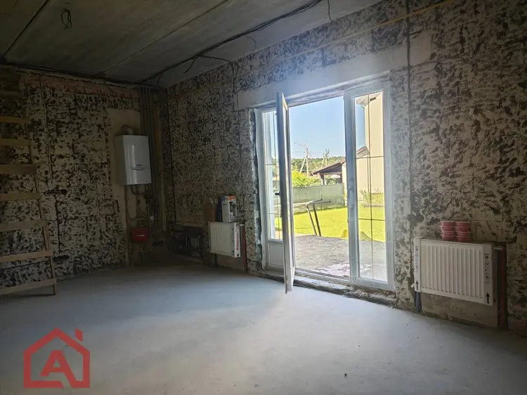 Год постройки-2012. Имеется возможность увеличить жилую площадь (под крышей таун-хауса имеется большая дополнительная площадь и с одной стороны таунхауса можно пристроить дополнительную площадь). На первом этаже размещены: холл, тамбур, санузел, гостиная-кухня, кабинет, коридор. На второй этаж ведет монолитная лестница. На втором этаже размещены: санузел, корридор и три жилые комнаты. Отопление центральное газовое. На первом этаже установлены водяные полы. Окна двухкамерные пластиковые.